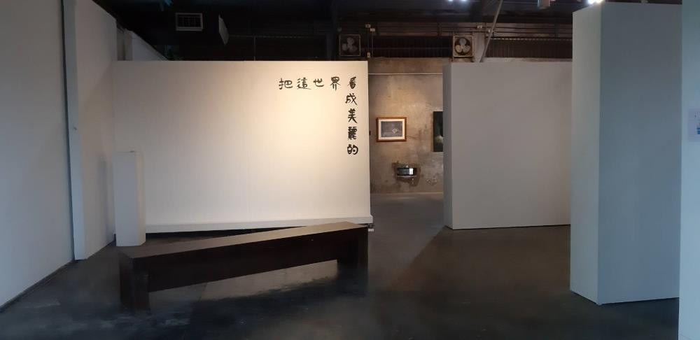 「把這世界看成美麗的」出自於法國詩人波特萊爾在壞玻璃匠此詩之中,此詩展現出在理性規範的世界中,直觀且感性衝動的作為,讓這世界從不完美中看成美麗的,是酒神戴奧尼修斯精神的一種體現,本次展覽藝術家展現出這種酒神感性的精神,表現出直觀中,各種突破規範中的衝動,作品無法受限於媒材形式,是理性與感性衝撞的表現。