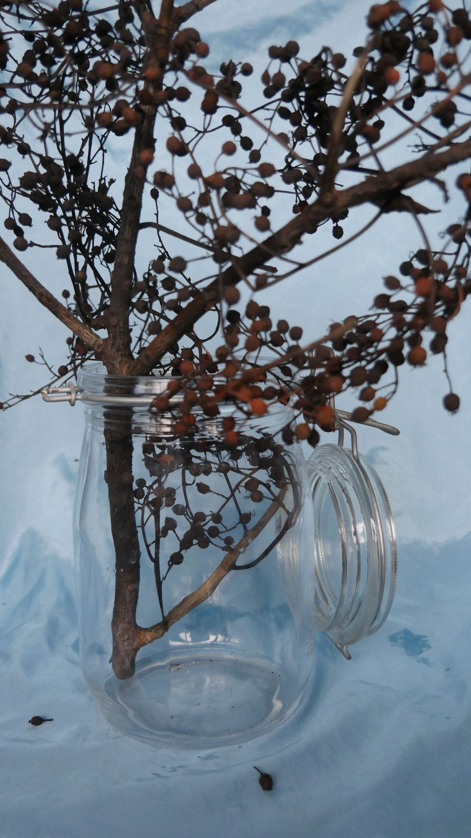 《煙物》以燃燒煤油所產生的黑煙,微微地燻烤在現成物上,進而探討萬事萬物的形體、精神,或者靈魂之消逝。藝術家在煙霧繚繞的「煙物區」裡,審思「消逝」,或者「再生」,也企圖探索萬事萬物在天地時空洪流裡,其消失、轉化、延續與新生。