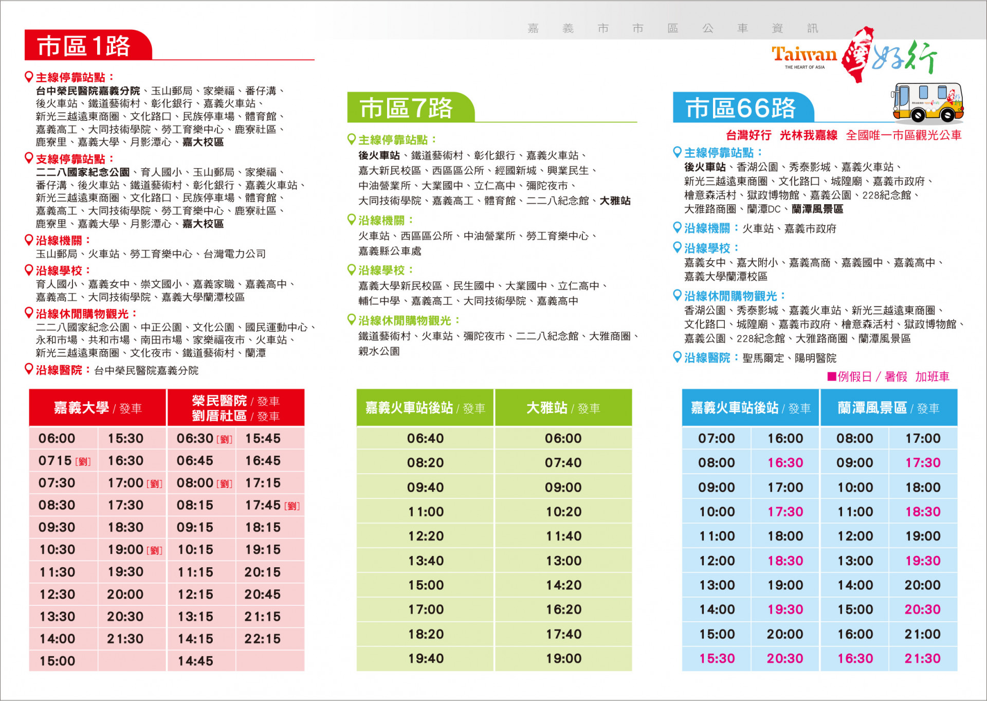 嘉義市市區公車(1路、66路及7路)至108年8月31日止,民眾持悠遊卡、一卡通等電子票證可免費搭乘,來嘉參加夏至藝術節民眾可多加利用,其中夏至藝術節嘉義市區活動場地公車搭乘資訊如下: