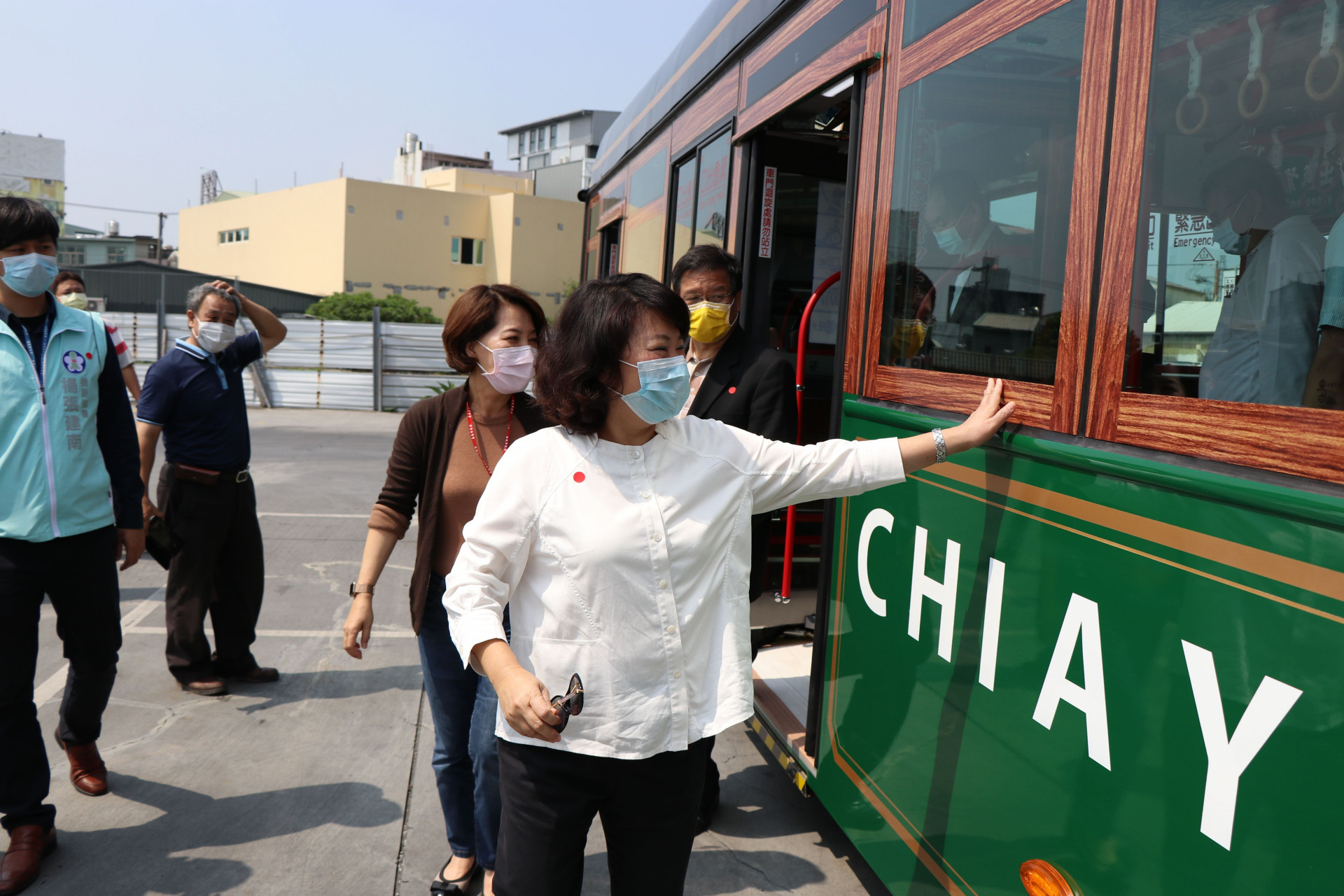 黃敏惠市長並特別感謝在地設計師SMART的巧思設計,她指出公車外觀相當亮眼,設計風格活潑中帶有典雅的氣息。黃敏惠市長強調,嘉義市的電動公車即將上線,但很不湊巧剛好遇到新冠肺炎疫情的延燒,希望大家更要嚴正以待做好萬全準備,把相關防疫工作做好做足,推動電動公車刻不容緩,大家繼續加油,共同打造更優質更完善的綠色大眾運輸系統,打造一個低碳、慢活的健康城市。