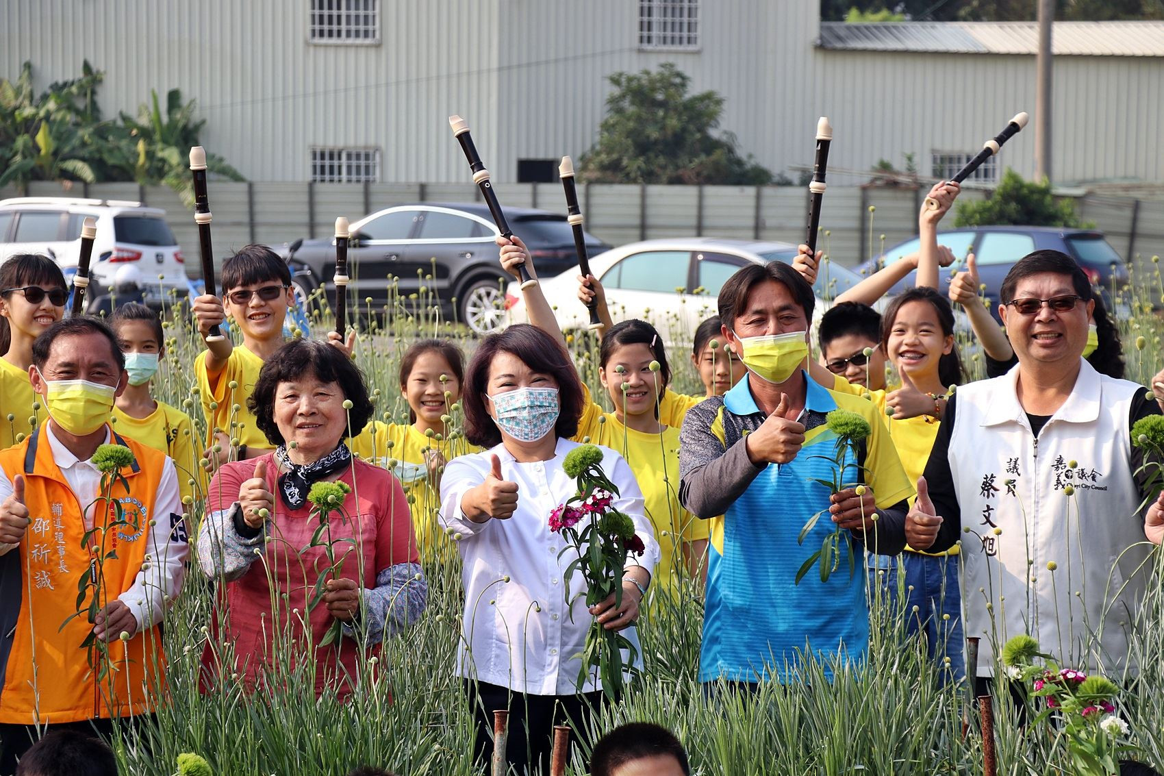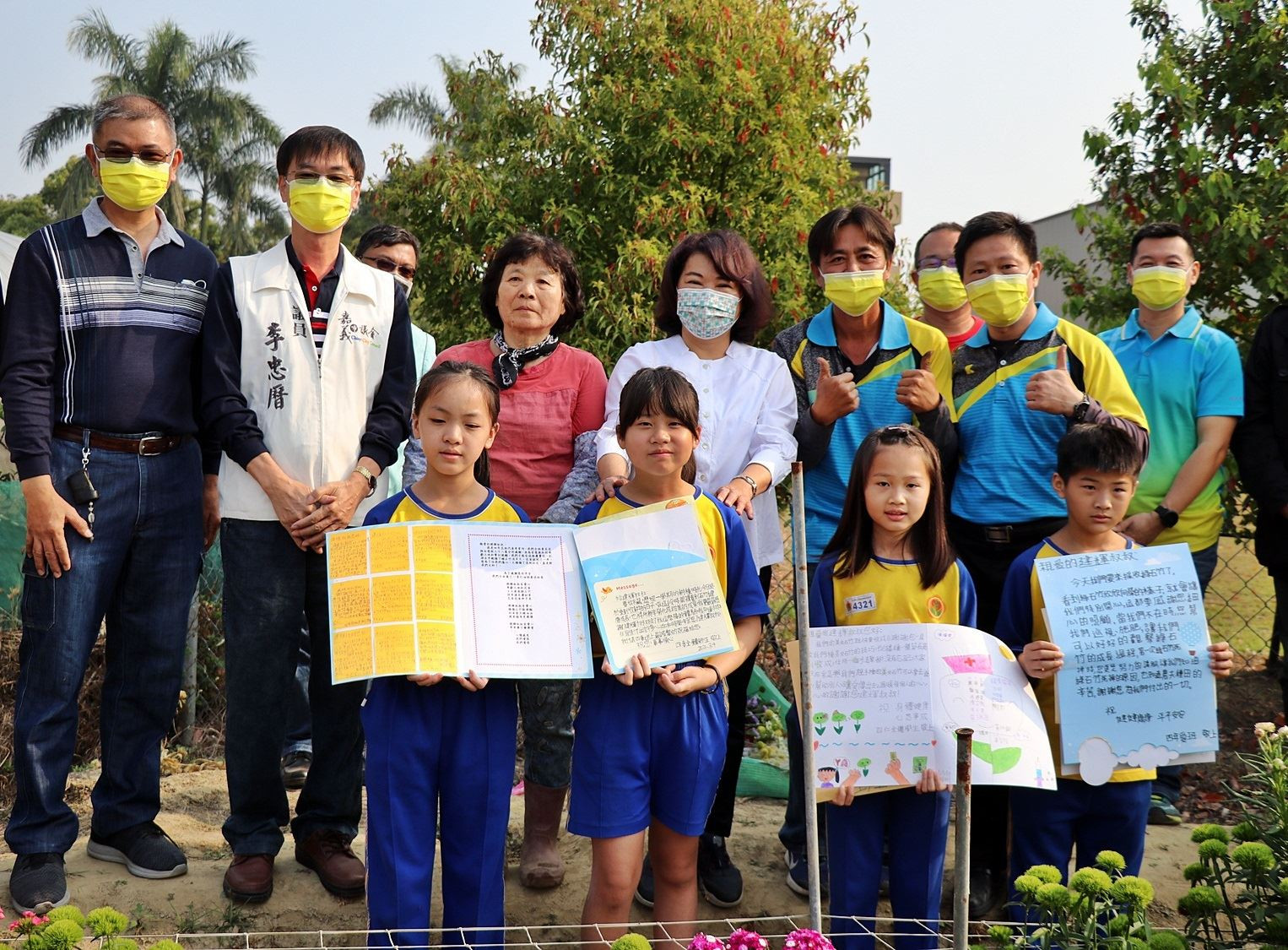 育人國小「小花農」特色課程由一群四年級的老師們設計,去年10月在學校家長會前會長李建輝會長無償提供花田下,由四年級學生巧扮小花農們栽種下希望的種子。持續四個月的種花課程及體驗學習,讓學生記錄下綠石竹展綠葉、生長、結花苞到收成的成長過程。今日舉辦豐收活動,除了由孩子們以美妙的樂音吹出「夢田」等歌曲,同時展示出孩子們親手寫的卡片及打油詩,感謝李建輝榮譽會長提供花田並協助栽種,字裡行間充滿了感激之意。今日為了把綠石竹採收下來,許多孩子們都捨不得離開,紛紛表示種植及採收的過程充滿了樂趣,喜悅之情溢於言表。