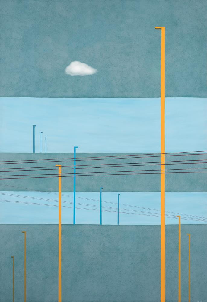 張文靜居住在嘉南平原,生活在郊區,開車是必然,而騎自行車是她最愛的運動,行駛在公路上,遼闊的天空,常常是沒有色彩的灰,當霧霾覆蓋了大地,是鬱悶、是無奈,在這無法改變的環境裡,她從日常的觀察中,對交通號誌、電線桿和路燈呈現的秩序和規律的美感,卻有了不同的觀看角度。在這樣的情境𥚃,她融入生活體悟,轉化思想空間和自己對話,於是「流動.日常」系列作品成為了傳達她內心思維的創作。