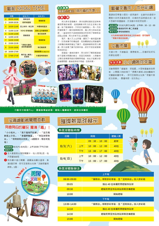 2019兒童藝術嘉年華。活動延至8月3至4日在原地點(嘉義製材所)舉行!