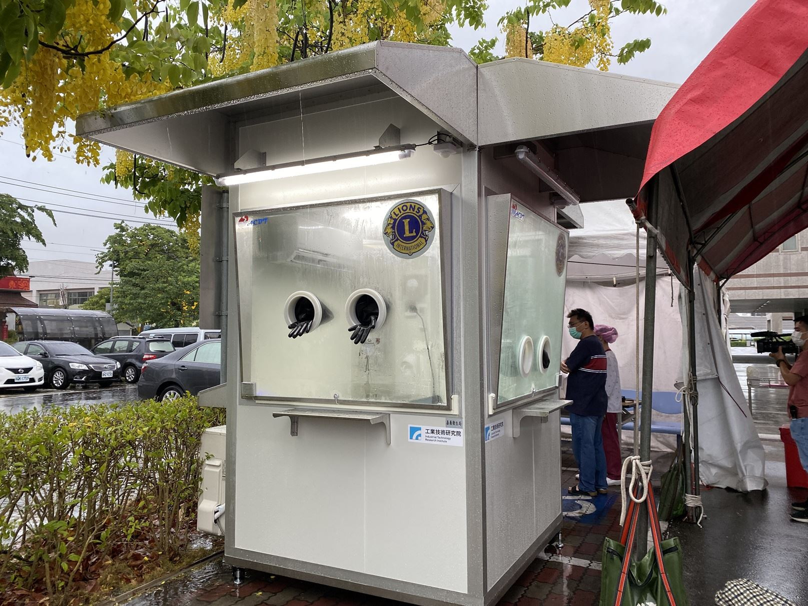 本土疫情持續延燒,第一線防疫醫護人員持續堅守崗位,不畏艱辛、全心全力照顧病患,為了讓包著密不通風全副武裝的新冠肺炎採檢人員,有一個兼顧安全與舒適的採檢環境,嘉義市民間團體及個人主動伸出援手,出資購買4座正壓採檢亭,價值總計250多萬元,捐贈給嘉義市四家專責醫院使用,第一座採檢亭已於昨(30)日在部立嘉義醫院裝置完成,其餘的3座也會陸續裝置於聖馬爾定醫院,嘉榮及嘉基。