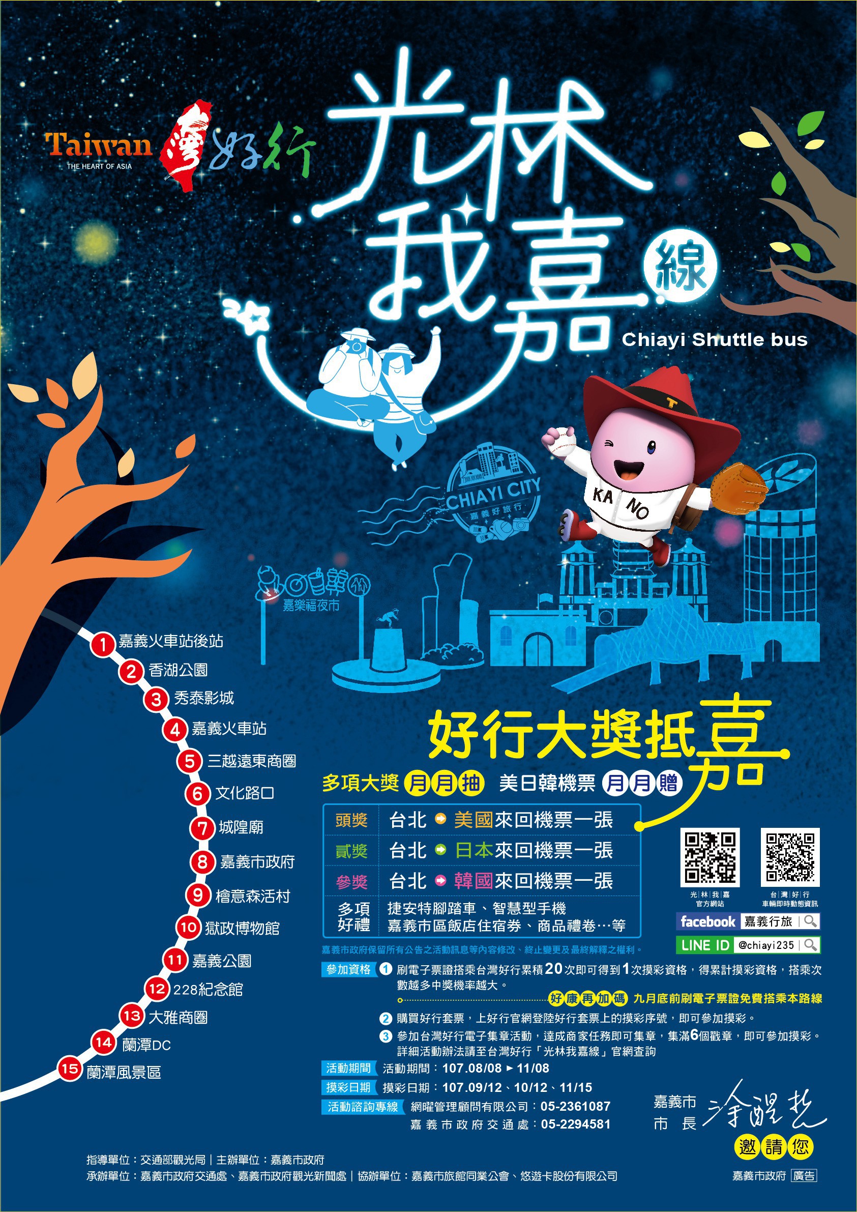 嘉義市台灣好行「光林我嘉線」觀光公車路線, 8月8日起正式營運,即日起到9月30日止,只要持電子票證就可以享免費搭乘優惠,暢遊嘉義市各熱門景點及商圈!