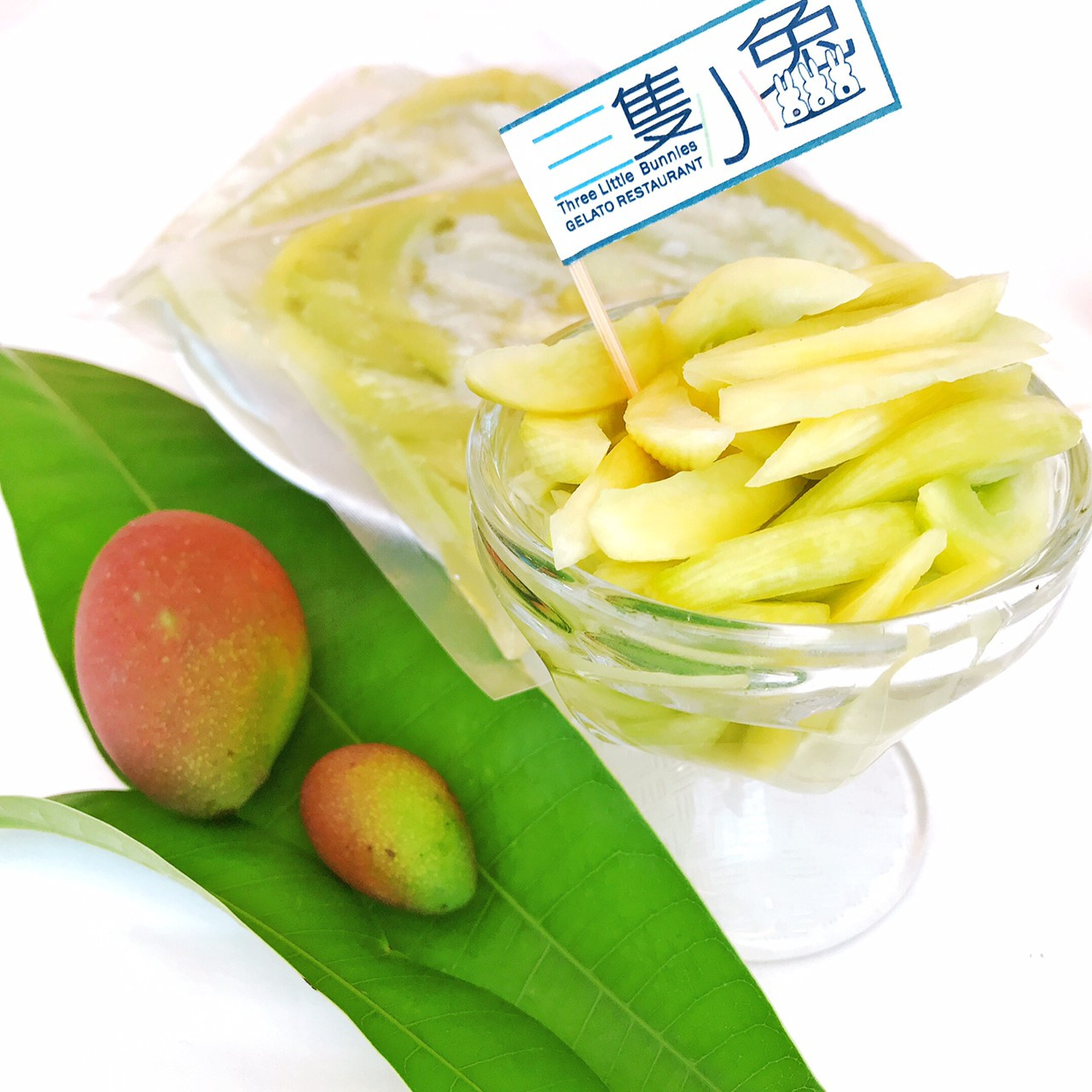 阿公阿嬤熱愛種植水果,在家鄉雲林斗六果園上種有文旦、柳丁、茂谷、芭樂和檸檬等水果。近年在竹崎意外獲得一處20年老欉芒果園,是嘉義特有珍貴品種「農民黨一號」又名「福爾摩沙總統一號」。 阿公有一位當醫生的兒子,心疼父親費心照顧的芒果盛產,卻因身為小農無適當銷售管道而悶悶不樂,為了幫芒果找尋出路,遂決定以父親自產的各種水果為食材製成冰淇淋,並藉由女兒的巧思巧手繪出寶貝寵物三隻小兔作為店名,希望將父親的水果做最真實呈現。 三隻小兔義式冰淇淋餐廳,不僅滿足你我的視覺及味覺,亦融入健康的元素,更凝聚了一家三代的親情,賣的不只是健康義式手工冰淇淋,還有幸福繽紛感。