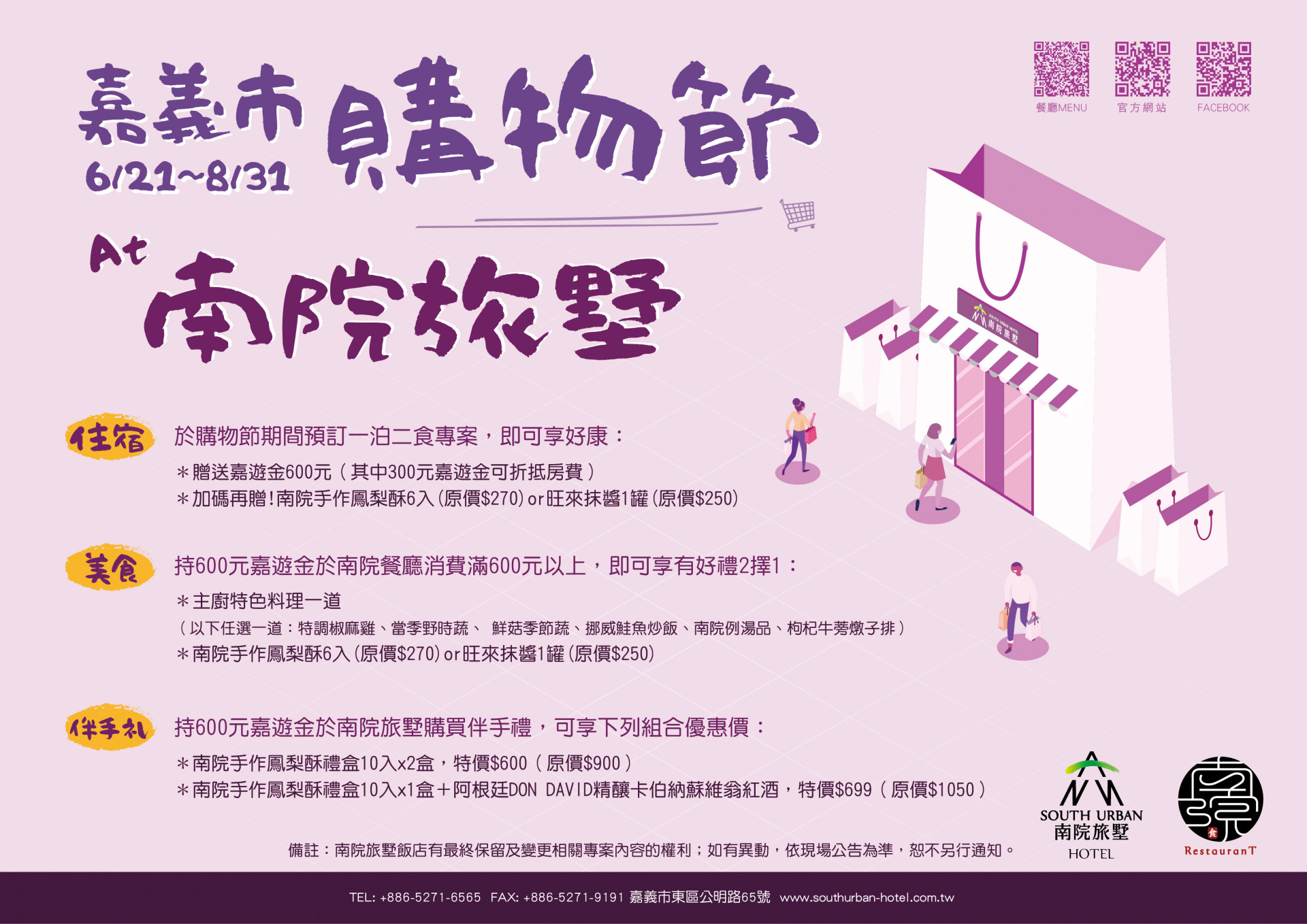 如果您正好需要一趟旅行,如果您嚮往南方的溫暖與熱情,如果您正好想來到嘉義 「南院旅墅」會是您最舒適的歇腳處,更是您旅途中的一處風景。位於嘉義市中心的「南院旅墅」,以「南方的院子,旅行中的別墅」為設計初心,取材阿里山森林、嘉南平原風光以及沿海美景,堆砌出「山、海、田」建築特色,營造舒適大氣的住宿環境,讓您在城市中,也能慢享整個嘉義風情。無論是獨行背包客、是兩人甜蜜共遊、三五好友同樂、家庭親子時光、商務會議參訪或美食饗宴、品嚐咖啡美酒,「南院旅墅」都能滿足您所有的想望。這次是甚麼緣由讓您來到嘉義?我們誠摯歡迎閣下蒞臨嘉義「南院旅墅」!