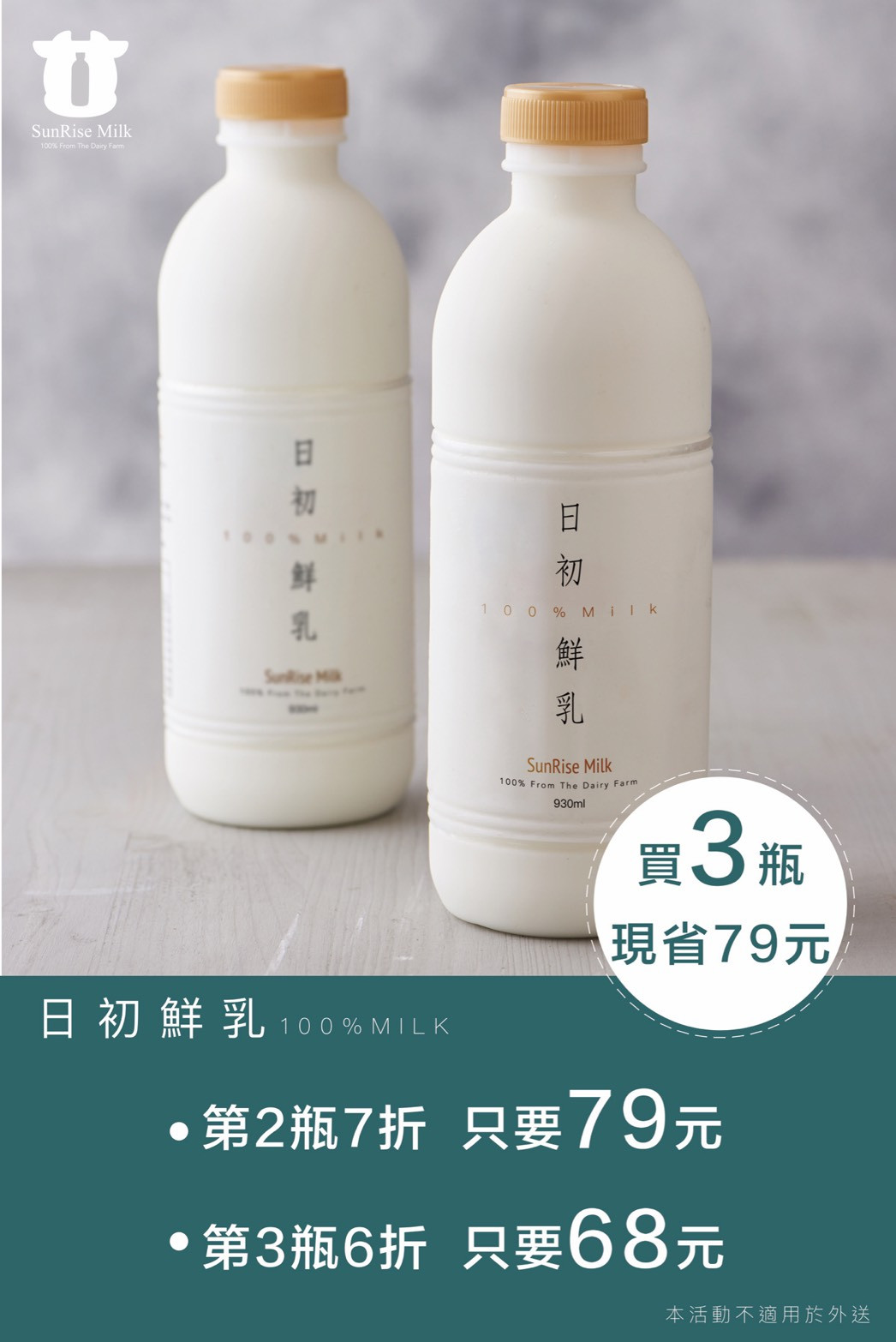 「日初鮮乳」原價$113,第2瓶7折 第3瓶6折