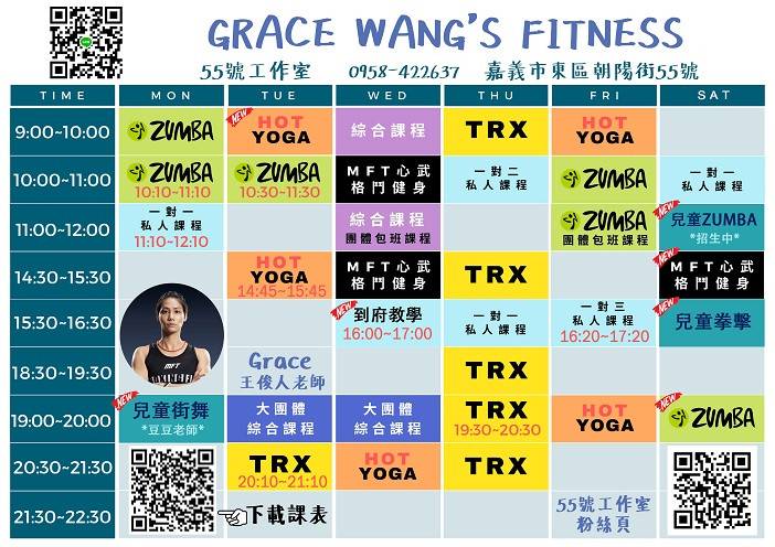 55號工作室介紹:55號工作室自2017年營運至今,從忠義街44號只有9坪小空間,2019年擴大營運,搬遷至朝陽街55號,佔地80坪。 我們秉持著推廣運動,讓運動更普及化的理念,希望透過運動幫助到更多需要幫助的人。 55號工作室提供學員良好舒適的運動環境,將工作室營造成像『家』一樣溫暖的感覺,並幫助學員養成良好的運動習慣,每次上課大家都像家人朋友一樣一起開心運動!!! 為了給大家更好更方便的運動環境與品質,我們額外免費提供寄放鞋子和寄放瑜珈墊及免費提供乾淨瑜珈墊借用的服務。 55號工作室提供的服務: 團體動態/靜態課程(有氧課程/瑜珈課程/各種訓練課程) 小型團體課程 一對一課程 我們相信-「專業不是自己說,是由別人來說」