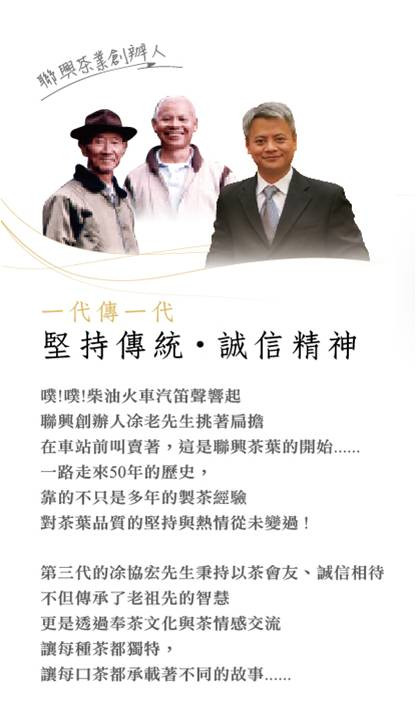 來自台灣原產地的純正茶葉 迄今邁向近60年 傳承創辦人的精神 遵循傳統工法 隨著時間不斷轉變 仍在逆境中堅持著不氣餒的精神 回歸最自然的真實健康渴望 近60年的老品牌 30萬以上的客戶品茗肯定 歡迎來聯興認識台灣好葉